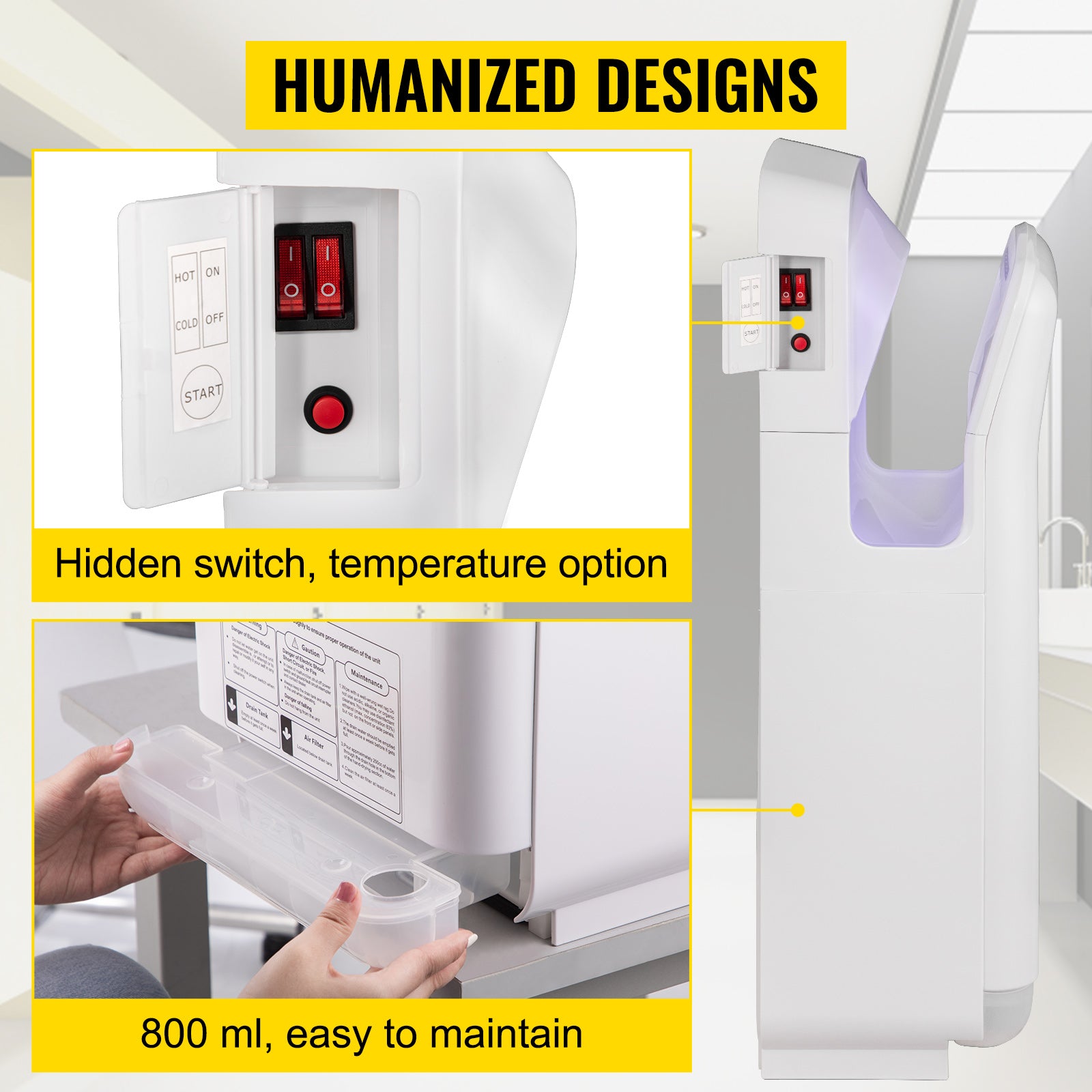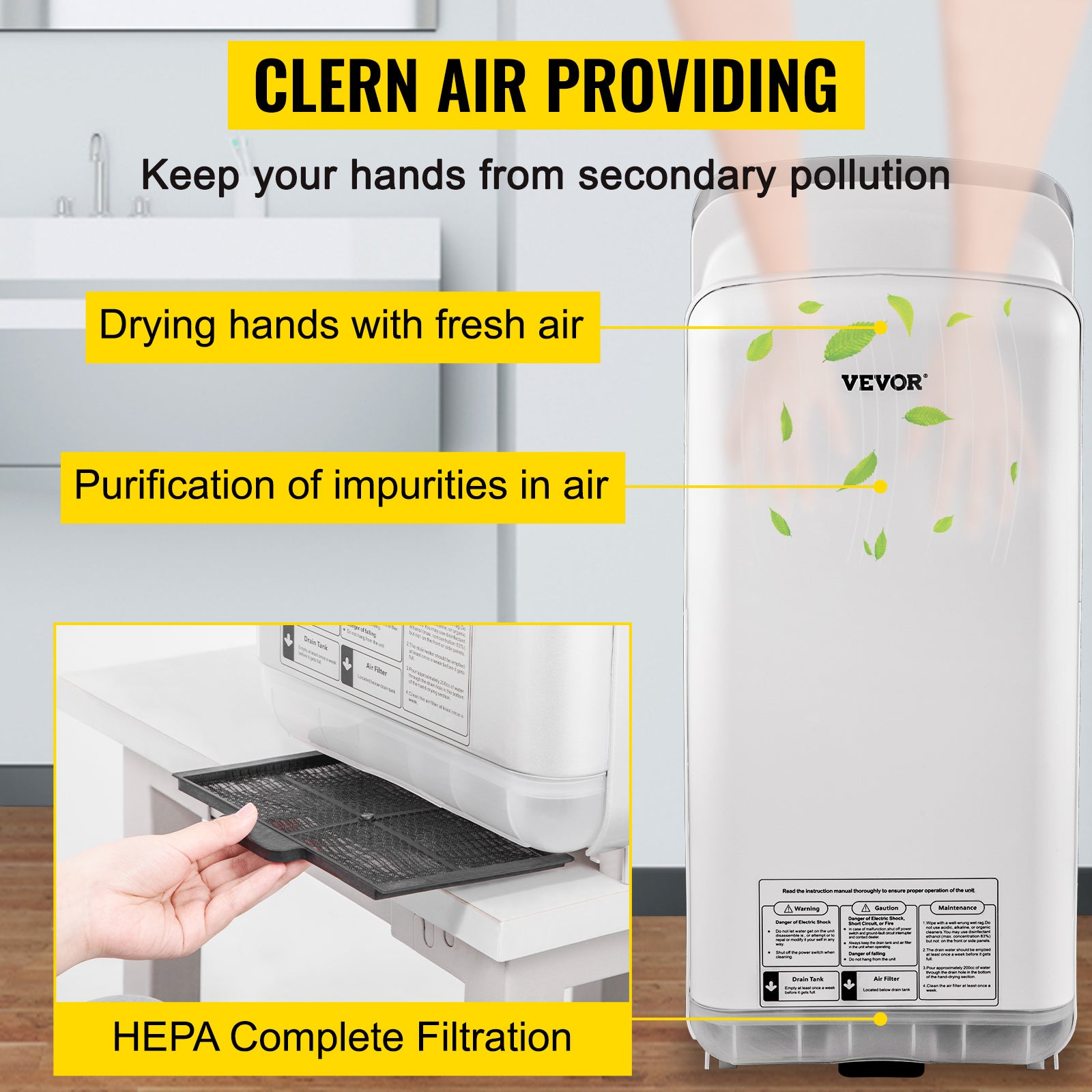 SucceBuy Hand Dryer Machinery Automatic High-speed Jet Double-sided Secure Robust Material Blade for Washroom Multicolor